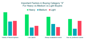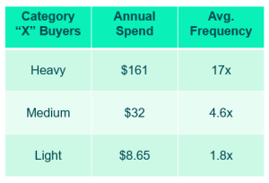Verified Buyer data unlocks opportunities to define and understand precise targets when supported by a single-source panel. For example, brands can understand key differences of attitudes among behavioral groups like: