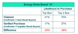 Top Box scores – those showing the most favorable responses – are especially vulnerable. Confirmed Recall buyers are typically more engaged and give higher scores. But Forgotten Recall buyers, who are less engaged, often rate the brand more neutrally or negatively.