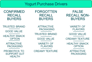- Including False Recall buyers causes misinterpretation of purchase drivers, steering brand messaging and innovation in the wrong direction.